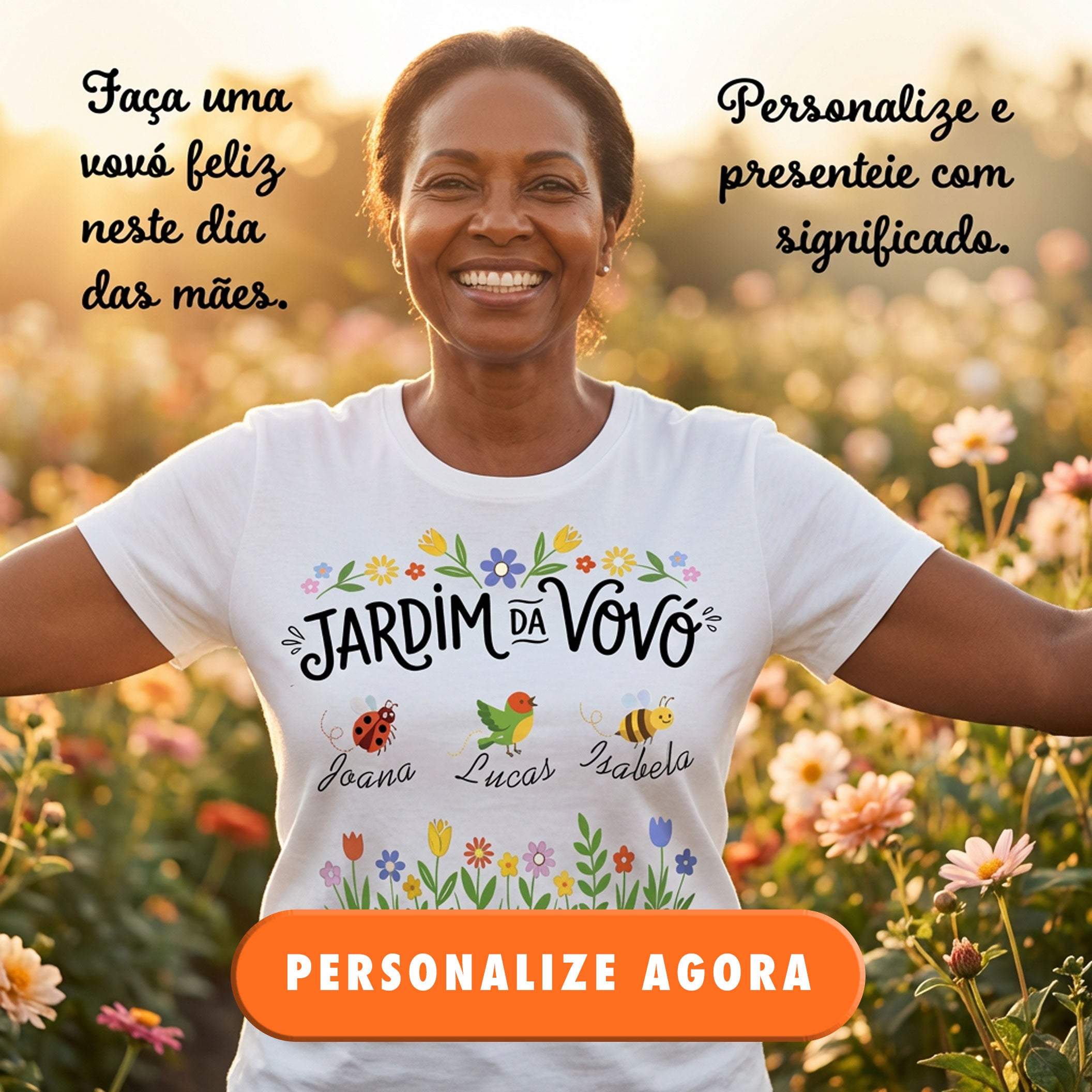 Personalize a frase, os nomes e as flores. Monte seu jardim e carregue junto do coração quem você ama.